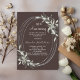 A bistre, dark brown background. Decorated with greenery and an oval frame. Personalize and add a name and details.