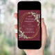 A merlot, burgundy background. Decorated with greenery and a golden oval frame. Personalize and add a name and details.