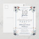 Celebrate your 10th wedding anniversary with this Cheers to 10 years wedding anniversary party invitation postcard. This design features a soft and pretty silver and blue theme with colorful floral accents in shades of blue and orange. Mix and match with other items in this charming tenth anniversary wedding collection.