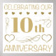 This elegant wedding anniversary gift idea has a beautiful gold design with hearts and fancy lettering.