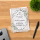 A frosted, transparent background. Decorated with greenery and an oval frame. Personalize and add a name and details.