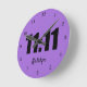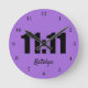 11:11 Lucky Time Purple Numbers Personalized Round Clock