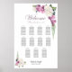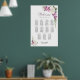 Help your guests find their table with this pink and white rose floral wedding seating chart. It is suitable for a wedding with 11 tables and 110 guests.