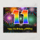11th Birthday – Fun Fireworks Pattern + Rainbow 11 Postcard