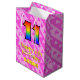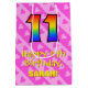 11th Birthday: Fun Pink Hearts Stripes; Rainbow 11 Medium Gift Bag