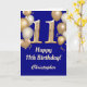 11th Birthday Navy Blue and Gold Balloons Confetti Card. For further customization, please click the "Customize it" button and use our design tool to modify this template.
