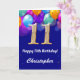 11th Birthday Navy Blue and Gold Colorful Balloons Birthday Card. For further customization, please click the "Customize it" button and use our design tool to modify this template.