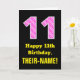 11th Birthday: Pink Stripes and Hearts "11" + Name Card
