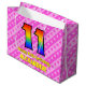 11th Birthday: Pink Stripes & Hearts, Rainbow # 11 Large Gift Bag