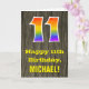 11th Birthday: Rustic Faux Wood Look, Rainbow "11" Card