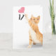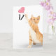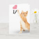 Gold tabby cat with pink heart balloon for 11th birthday on white background.