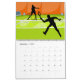 12 Months of Sports Design 2025 calendar, with a different sport featured each month, including: skiing, football, basketball, baseball, horse racing, golf, swimming, track and field, tennis, hockey, soccer and figure skating.