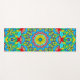 Enjoy this abstract yoga mat with a 12 petal yellow flower center. It is geometric with vibrant colors giving balanced energy and harmony.