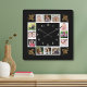 12 Photo Collage Create Your Own Gold Black Square Wall Clock