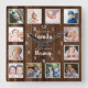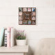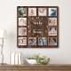 12 Photo Collage Family Blessings Quote Dark Wood Square Wall Clock