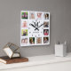 12 Photo Collage Family Name Monogram Black White Square Wall Clock