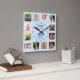 12 Photo Collage Family Time Quote Pastel Blue Square Wall Clock