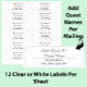 Add two lines of a guest's name to these 12 individually customizable laser cut, transparent address labels on clear self-adhesive stickers. This style is good if you're inviting a lot of couples whose names are longer than one line. These are slightly larger than return address labels so that they're sized correctly for addressing letters.