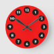 A stylish clock face with the numbers placed inside circular color spots in each hour position. Also available in other colors.