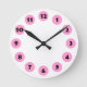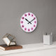 A stylish clock face with the numbers placed inside circular color spots in each hour position. Also available in other colors.