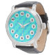 A stylish clock face with the numbers placed inside circular color spots in each hour position. Also available in other colors.