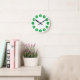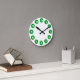 A stylish clock face with the numbers placed inside circular color spots in each hour position. Also available in other colors.