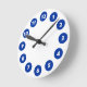 A stylish clock face with the numbers placed inside circular color spots in each hour position. Also available in other colors.