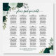 Make it easy for your guests to find their seats at your wedding reception with this beautiful seating chart. Features an elegant boho chic floral design with hand painted roses in shades of emerald green and sage. The flowers are surrounded by sprigs of garden leaves and foliage, and a lacy script calligraphy title adds a touch of elegance. Has space for 120 names at 12 tables with 10 seats per table.