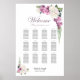 Help your guests find their table with this pink and white rose floral wedding seating chart. It is suitable for a wedding with 12 tables and 120 guests.