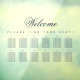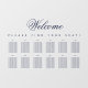 All text is navy blue. The word Welcome is written in an elegant calligraphic script, the rest in caps. The tables are on 2 rows. Above them and under the word Welcome, there is the message "Please find your seat!".