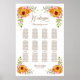 This sunflower and rose floral seating chart will help your guests find their table. It is suitable for a wedding with 12 tables and up to 120 guests.