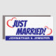 Getting ready for a wedding? Celebrate your special day with this 12" x 24" "Just Married" car magnet! From the background color to your names this magnetic sign is fully customizable. This car magnet is weather and wind-resistant up to 75MPH. Make sure to place your sign on a dry, dirt-free surface on your vehicle. Remove the sign when not in use. Failure to do so can cause permanent paint damage to your vehicle's paint job.