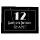 This vintage appearance Roaring '20s look inspired birthday gift bag design features a large art deco look inspired number "12", the message "Happy 12th Birthday,", a personalized name, and a border pattern consisting of thin lines. The background is colored black. A birthday themed gift bag like this might be used when giving a gift or present in celebration of somebody’s 12th birthday. [~Z0000496]