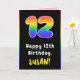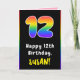 12th Birthday: Colorful Rainbow # 12, Custom Name Card