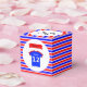 This 12th birthday party favor box is in bright red and blue colors and ideal for parties of mixed groups of boys and girls. It is easily personalized: just type the name of the birthday girl or boy in the box above and it will show in white text on the tshirt, on both front and back.The red birthday banner declares "BIRTHDAY" in black capital letters - or this too can be edited. On the box lid, the text reads "Thank you for coming to my Party" or you can edit this according to your requirements.