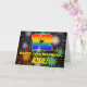 The front of this cheerful and eye-catching birthday themed greeting card design features a large number “12” with a multicolored rainbow spectrum inspired gradient pattern, along with the message “HAPPY 12th BIRTHDAY,”, and an editable recipient name. The background of the front has an exciting, colorful, bursting celebratory fireworks-inspired pattern. The inside features a personalized birthday greeting message, or could perhaps be cleared and left blank if a message is to be written by hand instead. A vibrant, customized birthday greeting card like this might be a fun way to deliver a birthday greeting message to somebody who is celebrating their twelfth birthday. [~Z0000619]