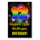 12th Birthday: Fun Fireworks Pattern & Rainbow 12 Card
