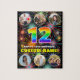 This cheerful and joyful birthday themed jigsaw puzzle design features the number “12“ with a multicolored rainbow spectrum inspired gradient pattern, along with the message “HAPPY 12th BIRTHDAY,” and a custom name, on a pattern inspired by bursting multicolored celebratory fireworks. The images near the top and bottom can be customized. perhaps with photos of the recipient, and/or the recipient’s family and friends. A bold, customizable birthday jigsaw puzzle like this might be a fun way to send birthday greetings to somebody who is celebrating their twelfth birthday. (Photography © Storytree Studios, Stanford, CA.) [~Z0000664]
