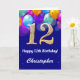12th Birthday Navy Blue and Gold Colorful Balloons Birthday Card. For further customization, please click the "Customize it" button and use our design tool to modify this template.