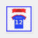 Personalize these party napkins with the birthday boy or girl's name: just type in the box. This design features a red and blue sports tee on a starry background, with a red happy birthday banner.