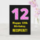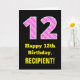 12th Birthday: Pink Stripes and Hearts "12" + Name Card