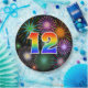 This colorful, fun, and cheerful paper plate design features a large number "12" having a rainbow spectrum gradient inspired pattern coloring. It also features a exciting and vibrant bursting celebratory fireworks inspired pattern. The background is colored black. Fun paper plates like this might be used at a celebration being held to honor somebody’s twelfth birthday, a twelfth anniversary, or some other twelfth event. [~Z0000490]