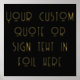 This real gold foil poster art features a text template in modern typography that easily allows you to add your own custom phrase, quote, saying, text, birthday wish, proverb, Bible verse, motivational quote, inspirational quote, funny quotes for kids, mom, dad, grandpa, grandma, boss, colleague, coworker, nurse, graduate, teacher and more. The font style here is in the theme of Art Deco, ideal for a wedding sign, notice or other.