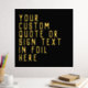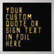This real gold foil poster art features a text template in modern typography that easily allows you to add your own custom phrase, quote, saying, text, birthday wish, proverb, Bible verse, motivational quote, inspirational quote, funny quotes for kids, mom, dad, grandpa, grandma, boss, colleague, coworker, nurse, graduate, teacher and more. The font style here is in the theme of a bold block font, ideal for a wedding sign, notice or other.