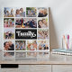 This modern photo collage has space for 13 photographs around the word Family in a bold font, there is also space for your family name.
