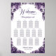 Help your guests find their table with this purple floral seating chart. It is suitable for a wedding with 13 tables and up to 130 guests.