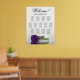 This elegant wedding seating chart has 13 tables and showcases a romantic and sophisticated design featuring a single long-stemmed deep royal purple rose lying on its side and reflecting in a pool of water. With seating arrangements for 130 guests and 10 seats per table, this chart provides ample space for your guests to locate their seats with ease. The title, "Welcome! please find your table," is written in elegant script calligraphy, while there is space available for the names of the couple and the wedding date at the bottom. This chart is an excellent way to add beauty, class, and style to your wedding reception, while also assisting guests in finding their seats.
