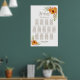 This yellow and pink floral seating chart will help your guests find their table. It is suitable for a wedding with 13 tables and up to 130 guests.