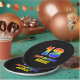 This cheerful, fun, and colorful birthday themed paper plate design features a large number "13" and the message "HAPPY BIRTHDAY,", both colored with a rainbow spectrum gradient inspired pattern, along with a bold yellow editable name. The background is colored black. Fun, personalized paper plates like this might be used at a birthday celebration being held in honor of somebody’s thirteenth birthday. [~Z0000488]