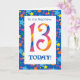 A bright and colorful 13th Birthday Card for a Nephew, with striped numbers and a starry border, from a digital design by Judy Adamson. You can change the inside message if you wish.